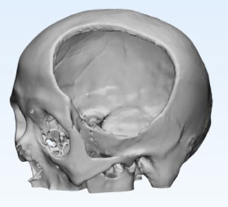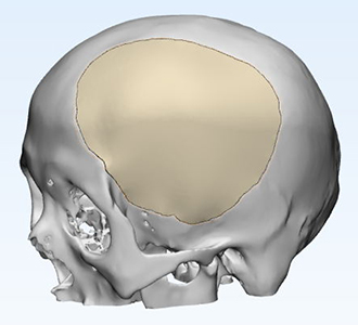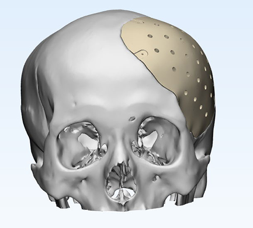 因患者缺損部位存在腦組織塌陷,皮膚張力可能存在不足,因此給予建議略微降低修補部位peek弧度;設(shè)計完成后請臨床醫(yī)生確認設(shè)計方案。