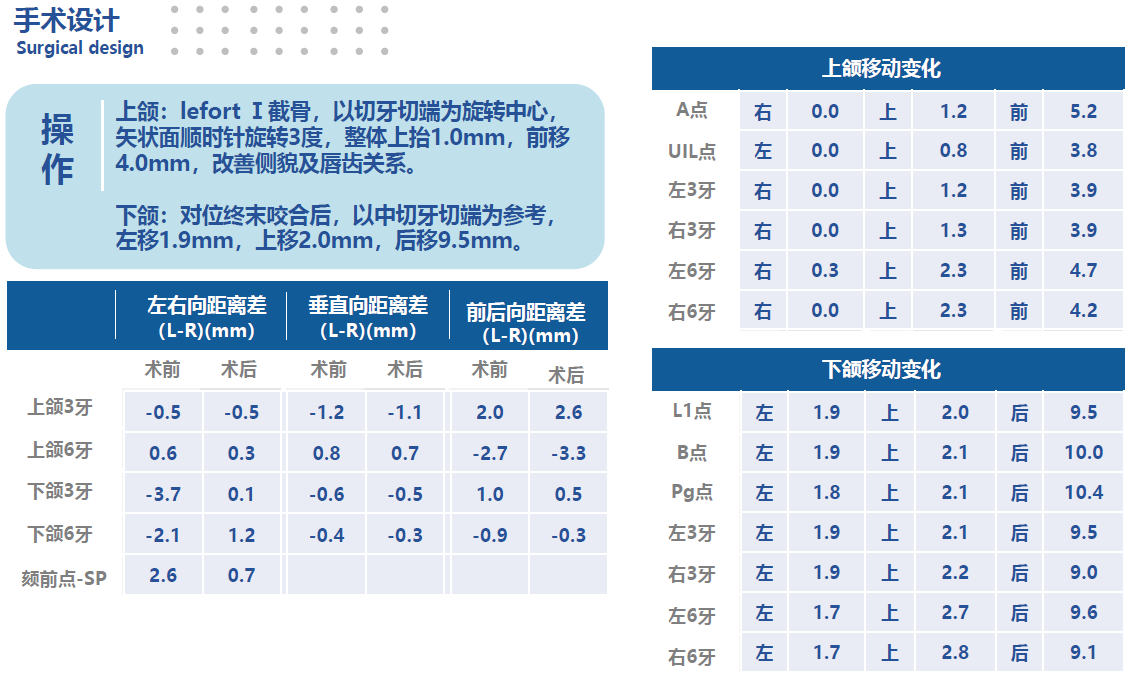 手術(shù)方案:上頜骨 LefortⅠ型截骨術(shù)+下頜骨矢狀劈開截骨術(shù)